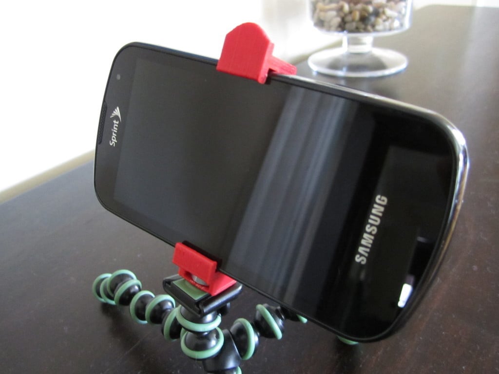 Phone Tripod Mount er et universelt design, der giver dig mulighed for at montere din telefon på ethvert stativ, herunder gorillapod. Det benytter en standard 1/4-20 møtrik for at sikre telefonens position på stativet.