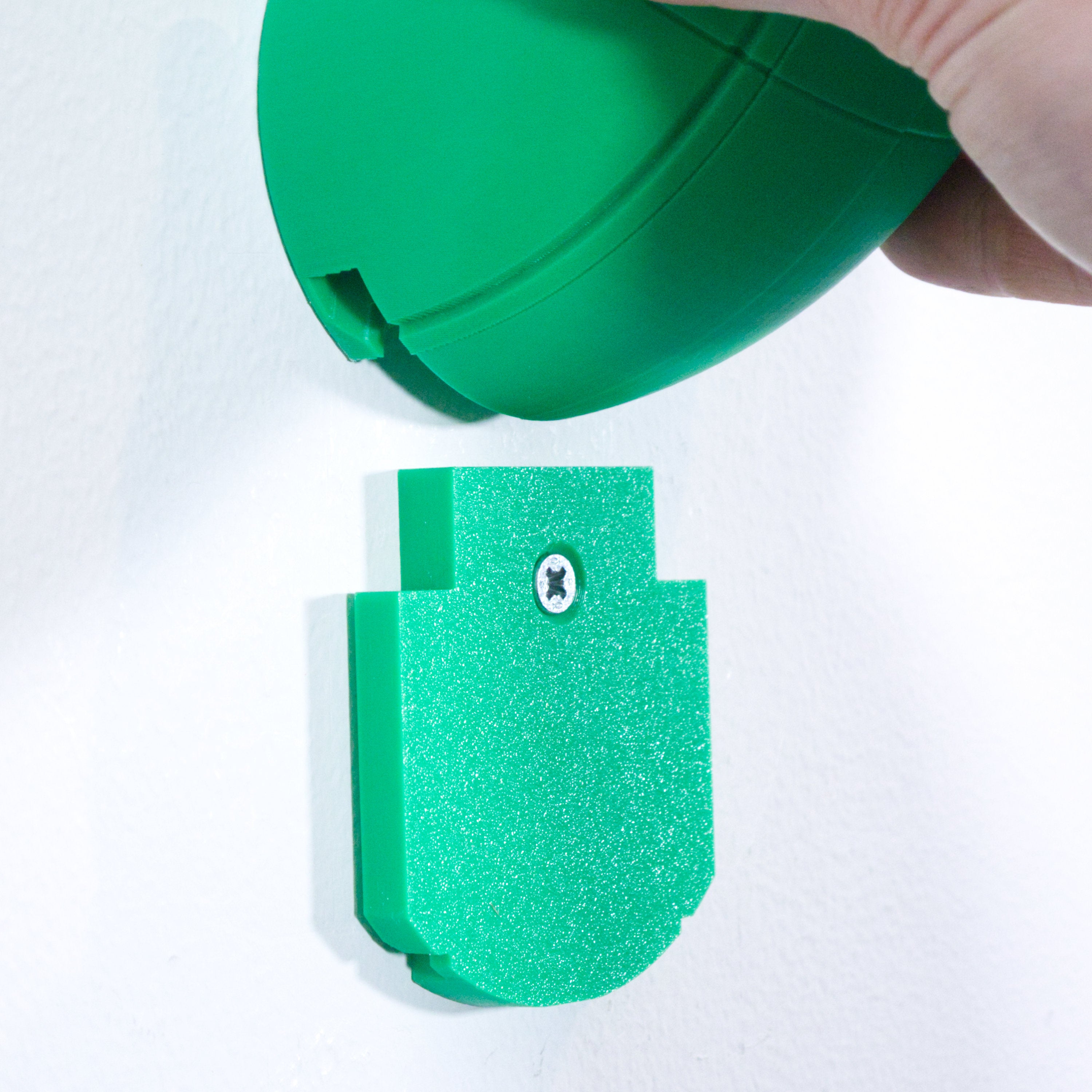- Monteres på væggen ved hjælp af en enkelt skrue og 3M Command-strip.