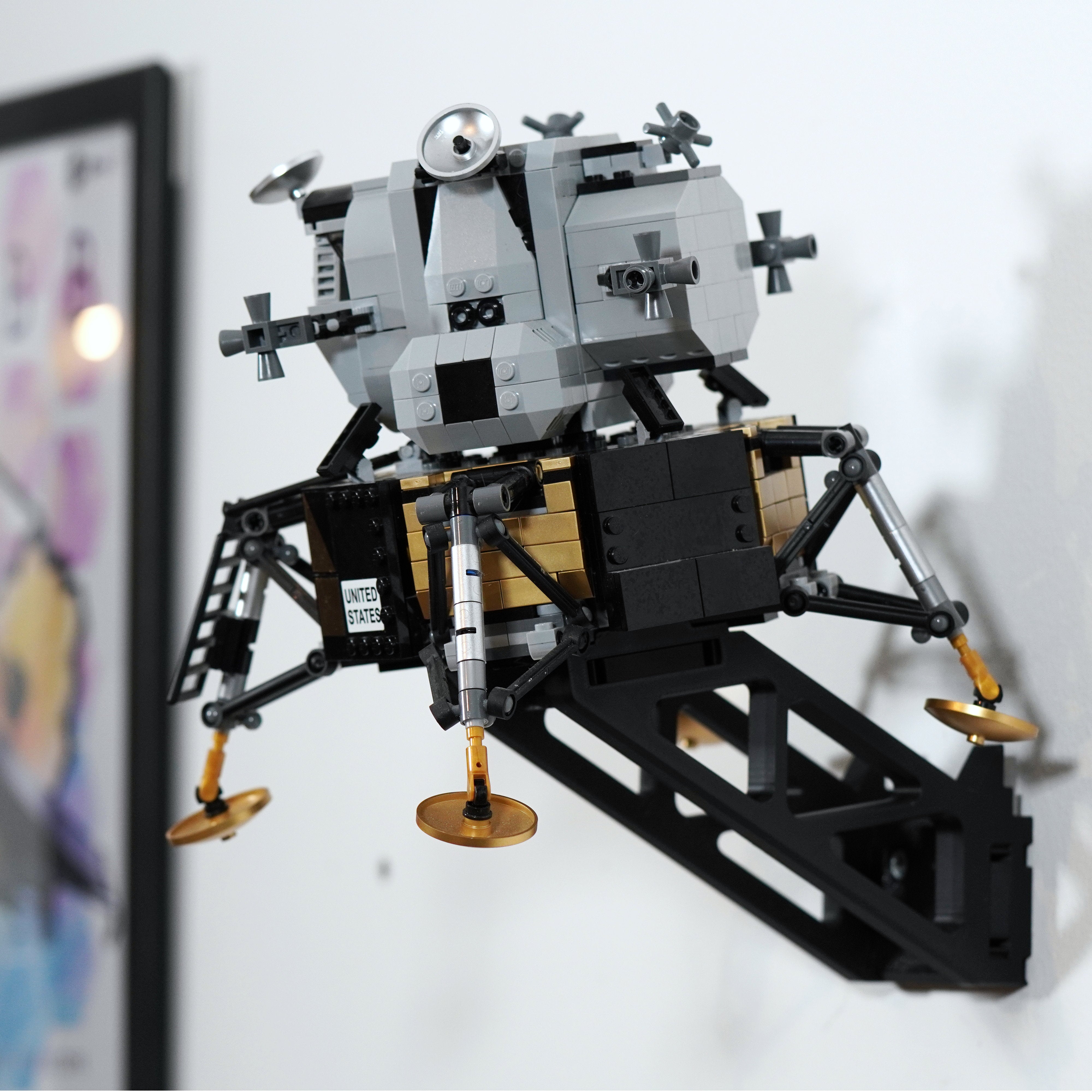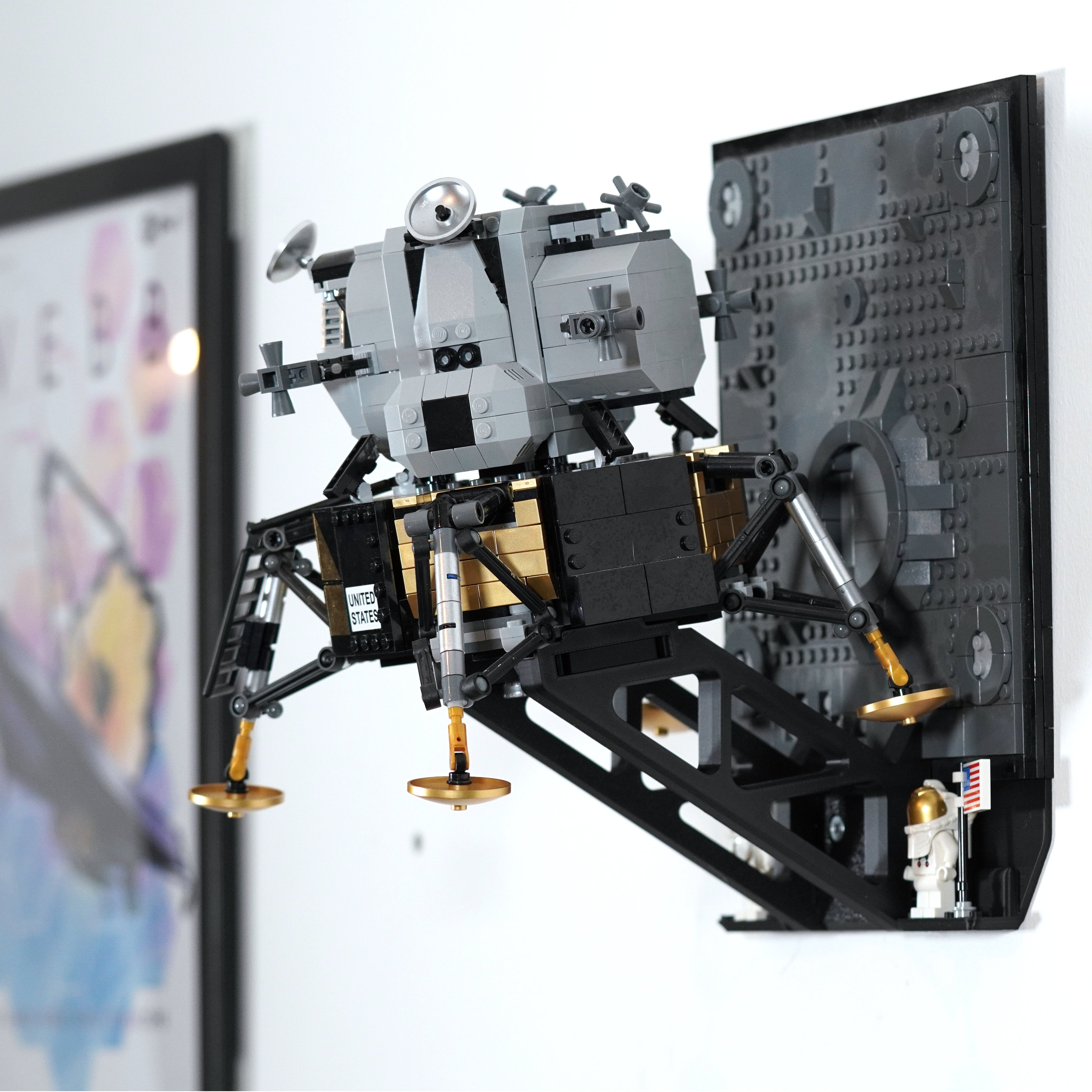 Dette vægbeslag giver dig mulighed for at udstille din Lunar Lander med eller uden måneoverflade og minifigurer. Løsningen sikrer en stabil montering, hvor modellen let kan tages ned igen. Sættet monteres enkelt på væggen og skaber en elegant præsentation af dit rumsæt.
