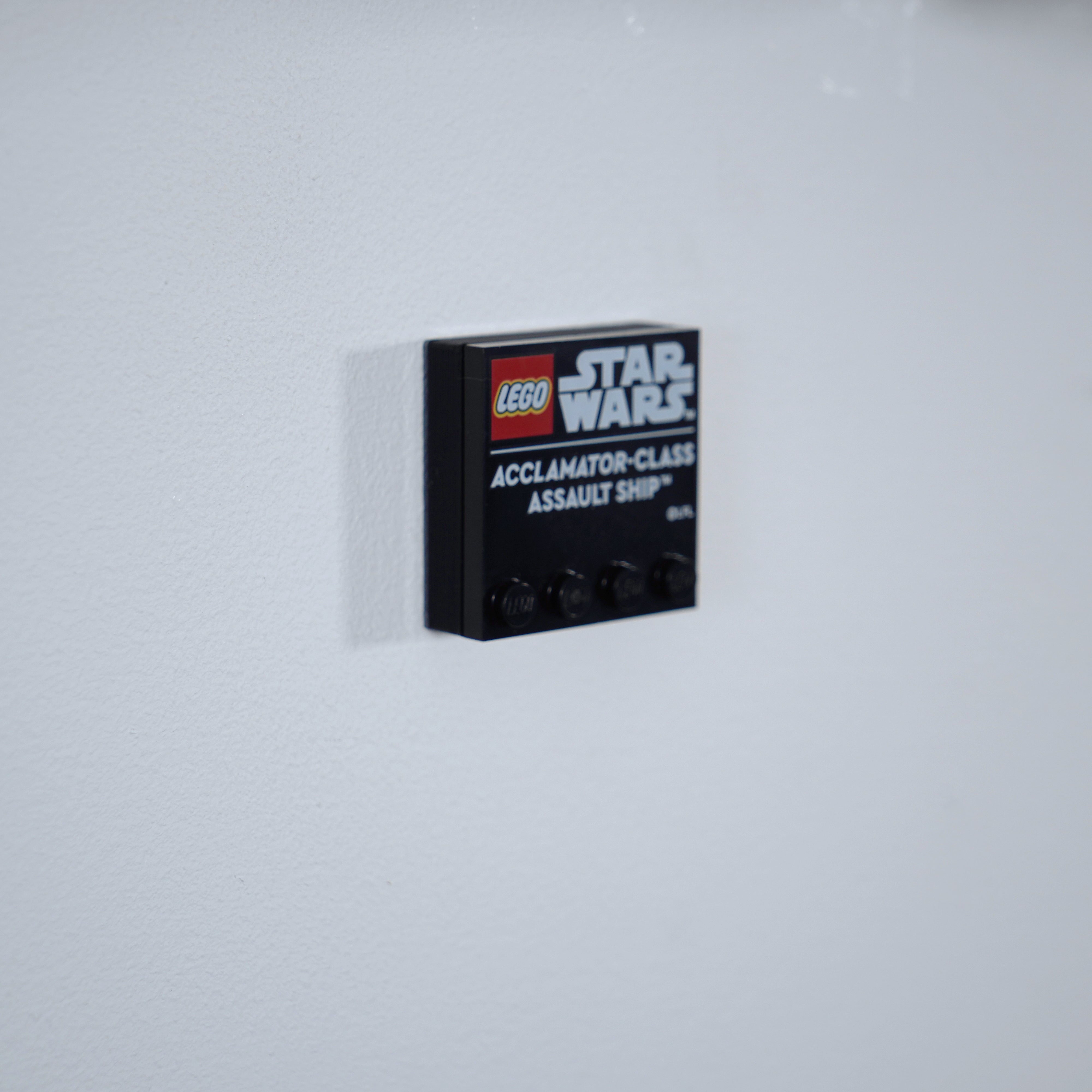 Dette vægbeslag lader dig fremvise dit Star Wars Acclamator sæt på en sikker og elegant måde. Vælg mellem plan montering eller vinklede positioner for at tilpasse udstillingen til dit rum. Designet sikrer, at modellen nemt kan tages ned igen, og sættet inkluderer en holder til navnepladen.