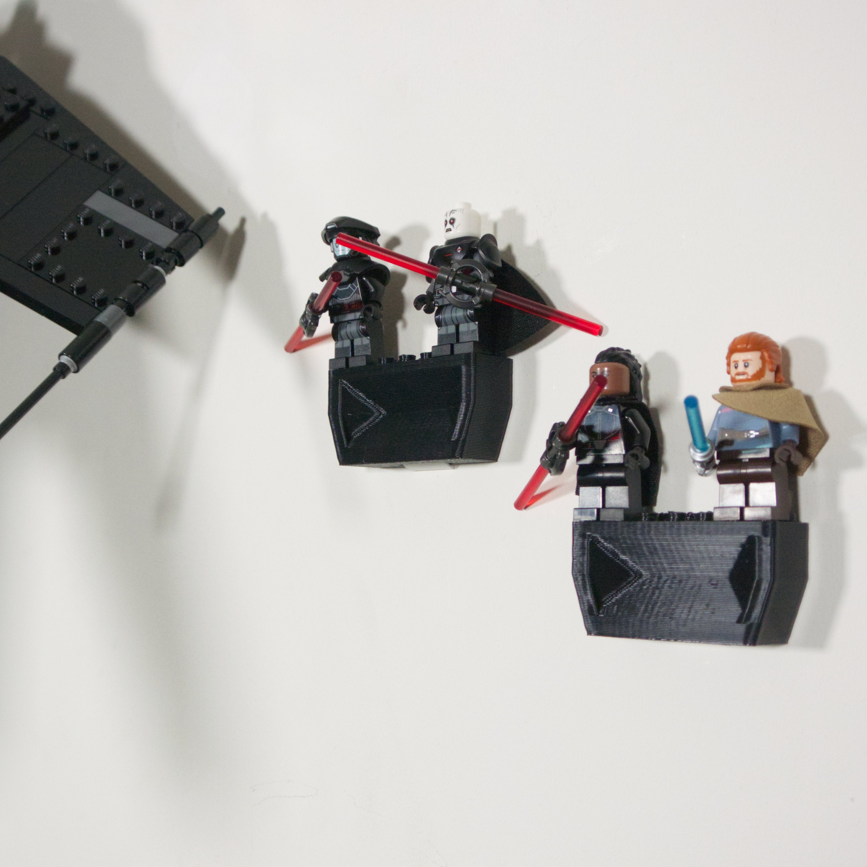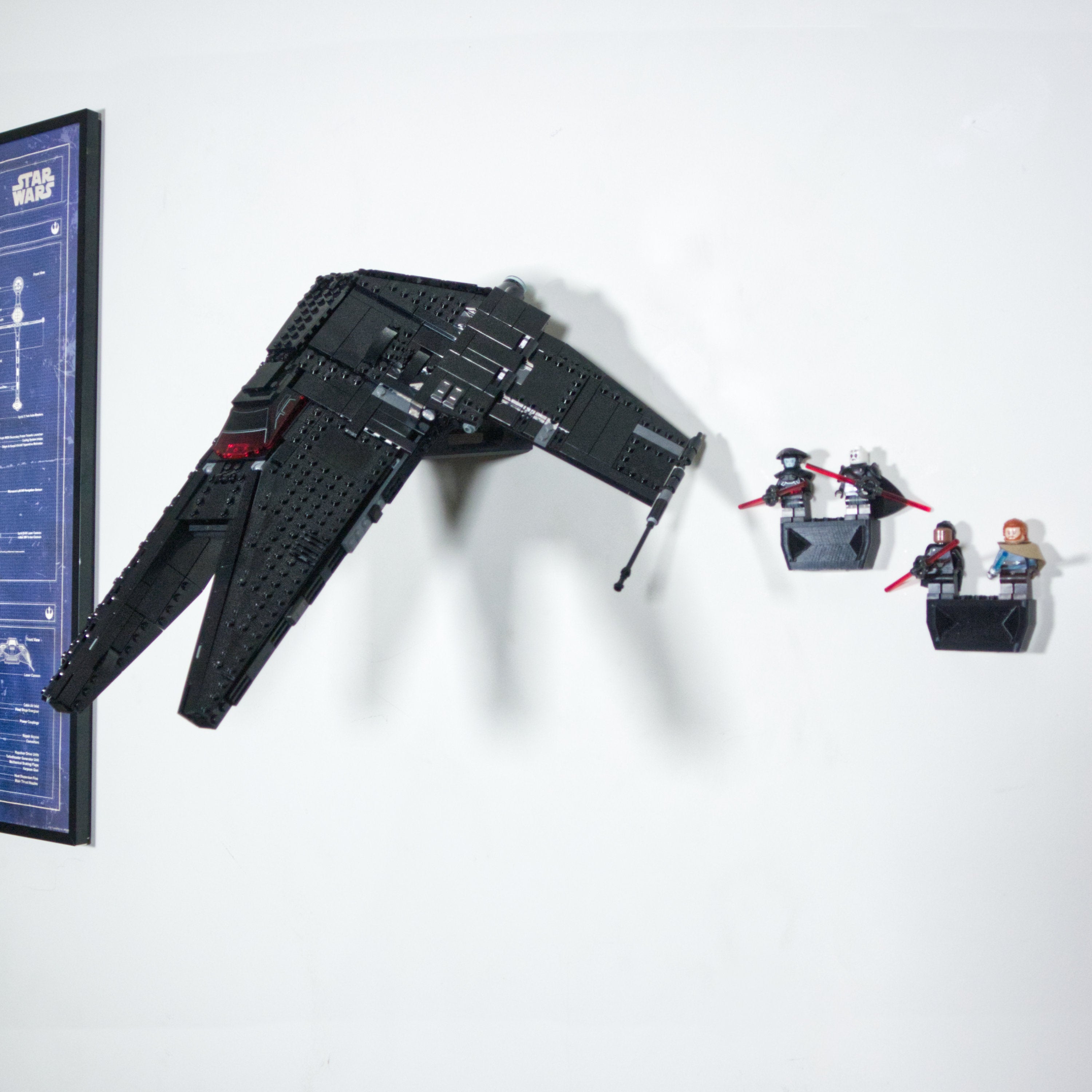Dette vægbeslag gør det muligt at præsentere din Star Wars Inquisitor Transport Scythe sikkert på væggen. Modellen hænger i en nedadgående vinkel og kan let tages ned igen. Der medfølger desuden holdere til alle minifigurerne, så hele sættet kan udstilles samlet på en elegant måde.