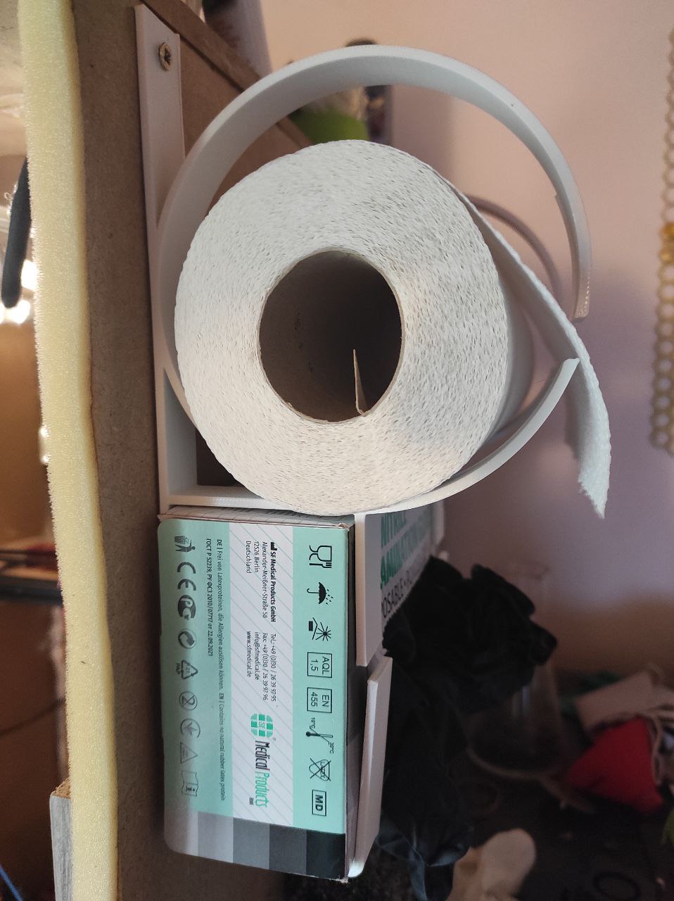 En vægmonteret holder til handsker og køkkenrulle, perfekt til dit resin 3D-print rum. Designet er minimalistisk og forbruger ikke meget filament. Denne holder er robust nok til at kunne betjenes med én hånd, hvilket er ideelt når du glemmer at gøre tingene klar i forvejen. Denne holder gør dit arbejde med din resinprinter nemmere og mere organiseret.