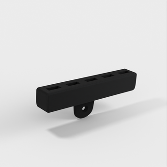 Dette er en USB-holder med plads til 5 kabler designet til at hænge på væggen ved siden af dit skrivebord, så dine kabler holdes ude af vejen, men let tilgængelige. Produktet er konstrueret til at hænge nedad og fastgøres til væggen ved hjælp af skruer. Det er nødvendigt at være en smule forsigtig, når du skruer den til væggen for ikke at splitte den øverste del.