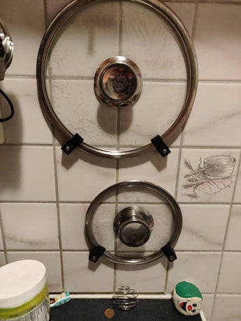 Disse vægmonterede holdere er designet til at give en praktisk opbevaringsløsning til dine grydelåg. Ved at hænge lågene op på væggen kan du effektivt frigøre værdifuld skabsplads og holde dit køkken mere organiseret. Holderne sikrer, at dine grydelåg altid er inden for rækkevidde, hvilket gør madlavningsprocessen mere strømlinet. Deres enkle og funktionelle design passer diskret ind i de fleste køkkener og bidrager til et ryddeligt og funktionelt arbejdsområde.