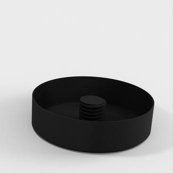 Rund kabelorganisator til permanent installation. Dette produkt har et hul i midten af basen, så det kan fastgøres til en væg.