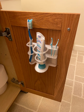 - Holder tandbørste, tandpasta og tandtråd organiseret