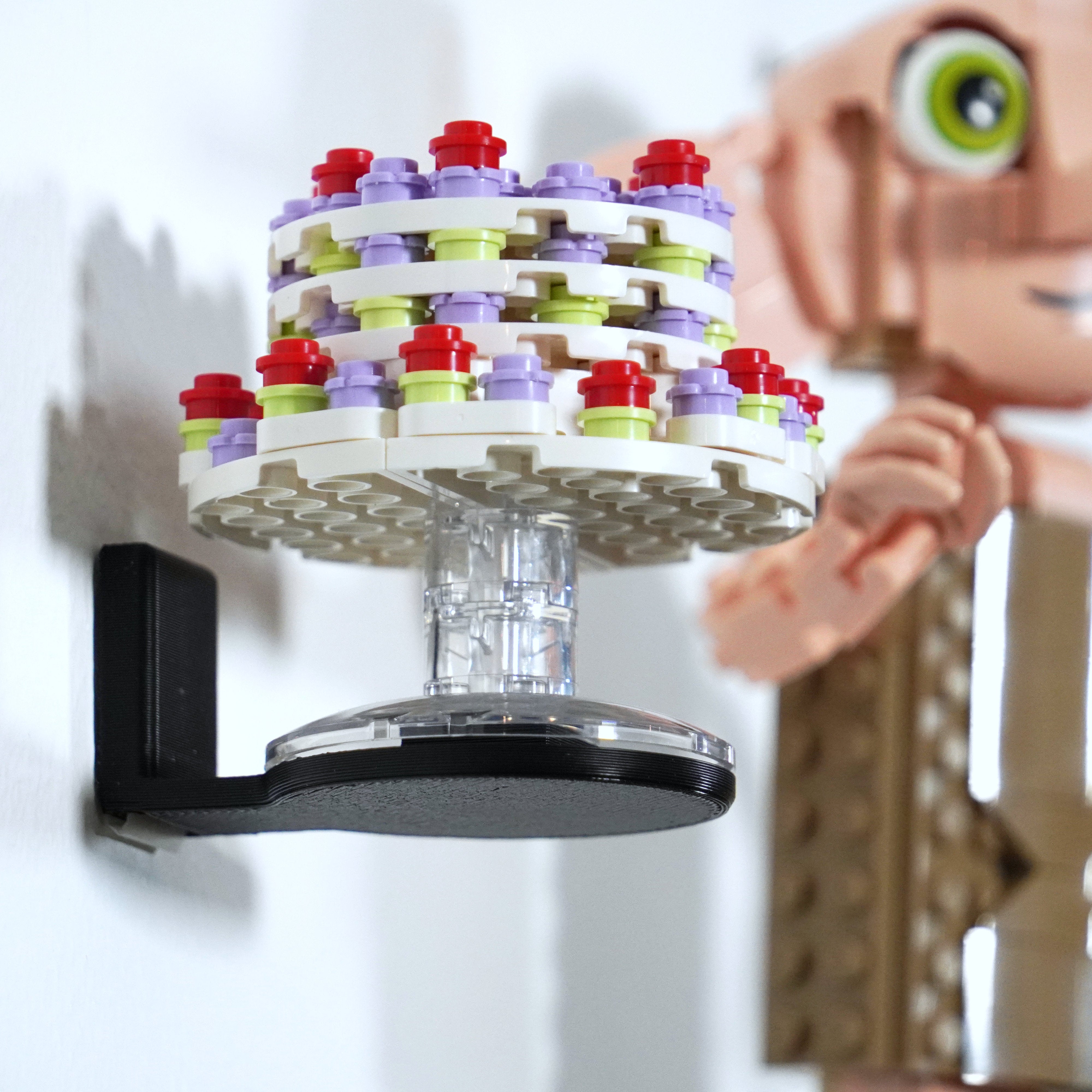Dette vægbeslag giver en stabil udstilling til Harry Potter Dobby Husalf sæt 76421. Løsningen gør det nemt at fjerne modellen igen ved behov. Der er inkluderet et monteringspunkt til kagetilbehøret, og beslaget fastgøres sikkert på væggen med to skruer for en pæn præsentation.