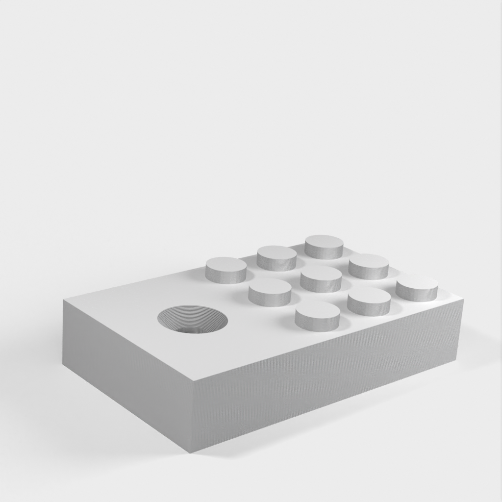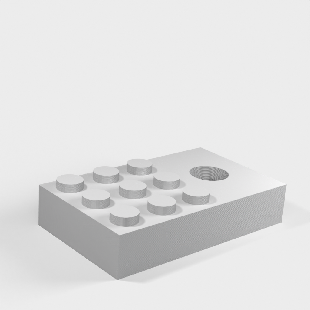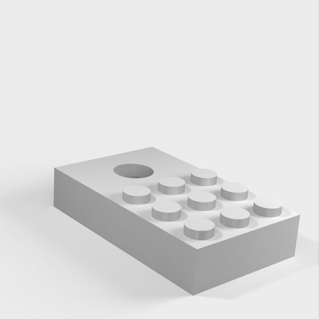 Dette er en vægmontering til Lego IR-controlleren, der hjælper dig med at holde din Lego-byggeplads organiseret. Den kan monteres direkte på væggen ved hjælp af skruer. Den er fremstillet af PETG og kan også printes fra PLA, hvilket gør det nemt at passe ind i ethvert interiør. Diameteren er 4 mm for at passe til de fleste almindelige skruer.