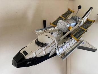 En vægbeslag til LEGO 10283 Shuttle Discovery. Med dette beslag vil shuttle og hubble samlet veje omkring 1,75 kg, hvilket er godt indenfor beslagets kapacitet, der er målt til mindst 2,5 kg. Shuttle præsenteres med en 10 graders hældning og en 20 graders rulle til venstre side.