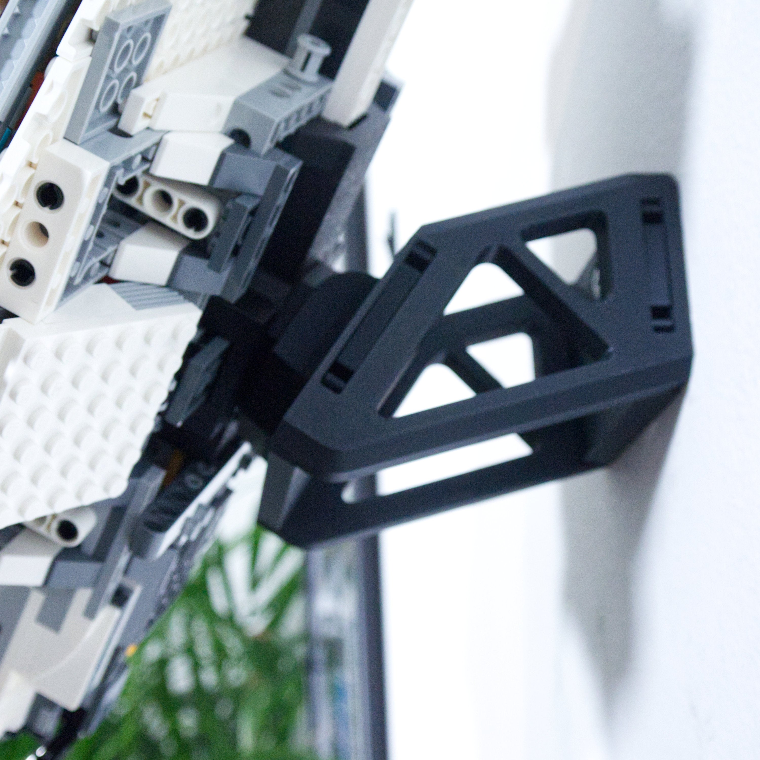 Fremvis dit LEGO Star Wars Ghost sæt dynamisk med dette vægbeslag. Den ottekantede adapter muliggør otte forskellige vinkler, mens det separate beslag til Phantom II kan justeres frit. Der medfølger desuden en stander til minifigurer, så hele samlingen kan præsenteres stilrent på væggen.