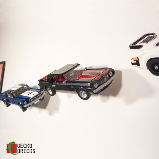 Dette 2-i-1 vægophæng er designet specifikt til LEGO Chevrolet Camaro Z28 10304. Beslaget giver mulighed for at udstille modellen enten vinklet eller fladt mod væggen. Bilen placeres sikkert i holderen og kan nemt tages ned igen, hvilket sikrer en fleksibel og pæn præsentation i hjemmet.