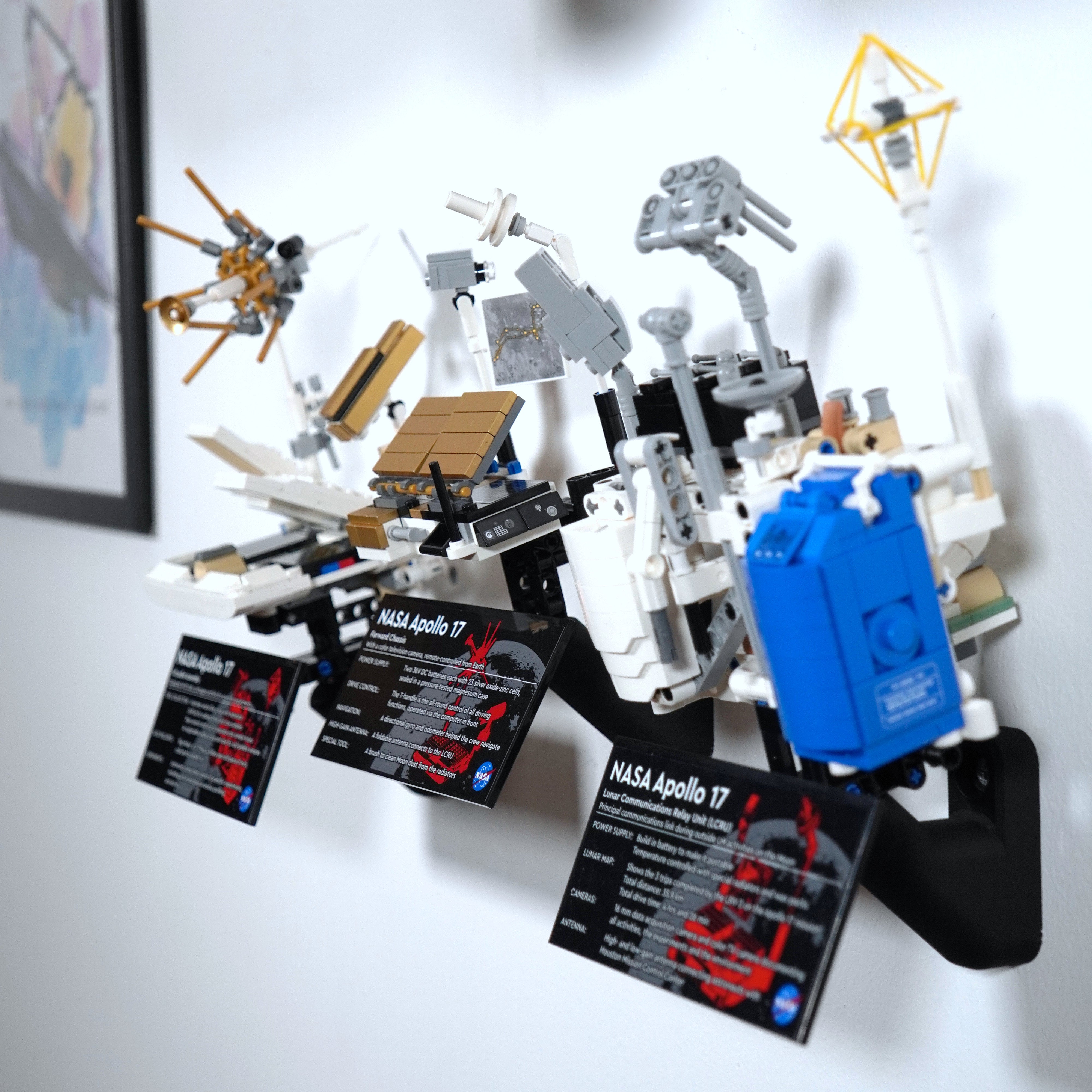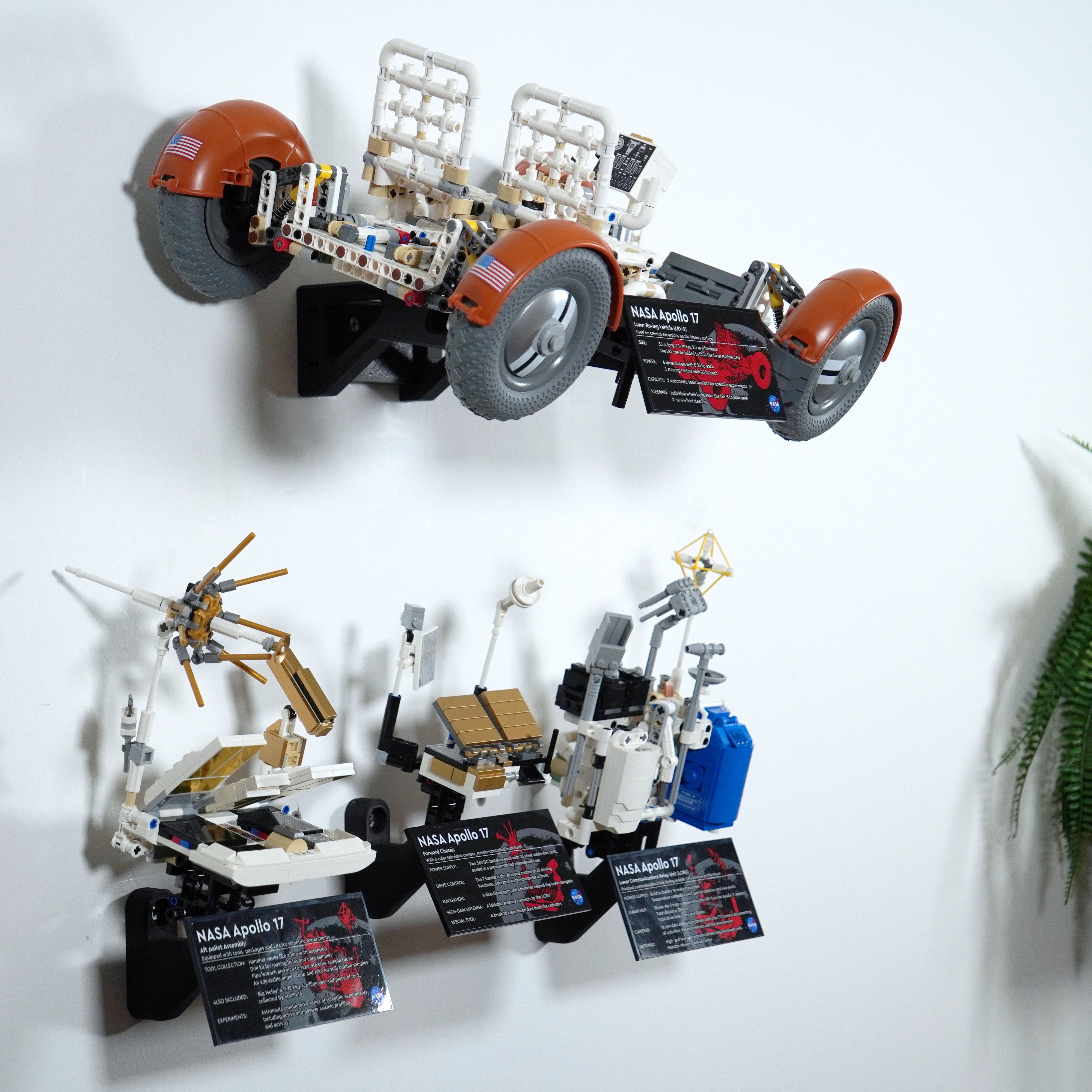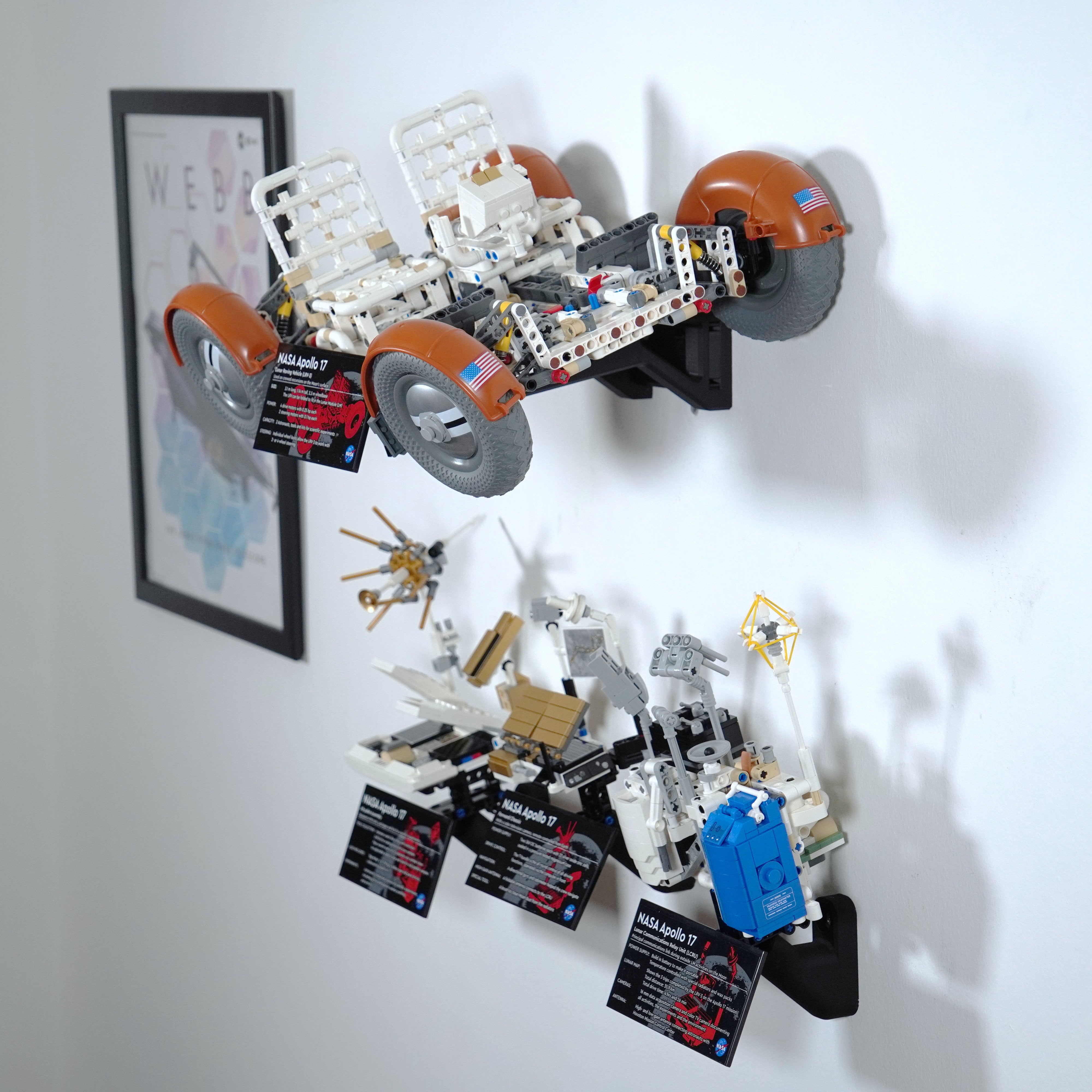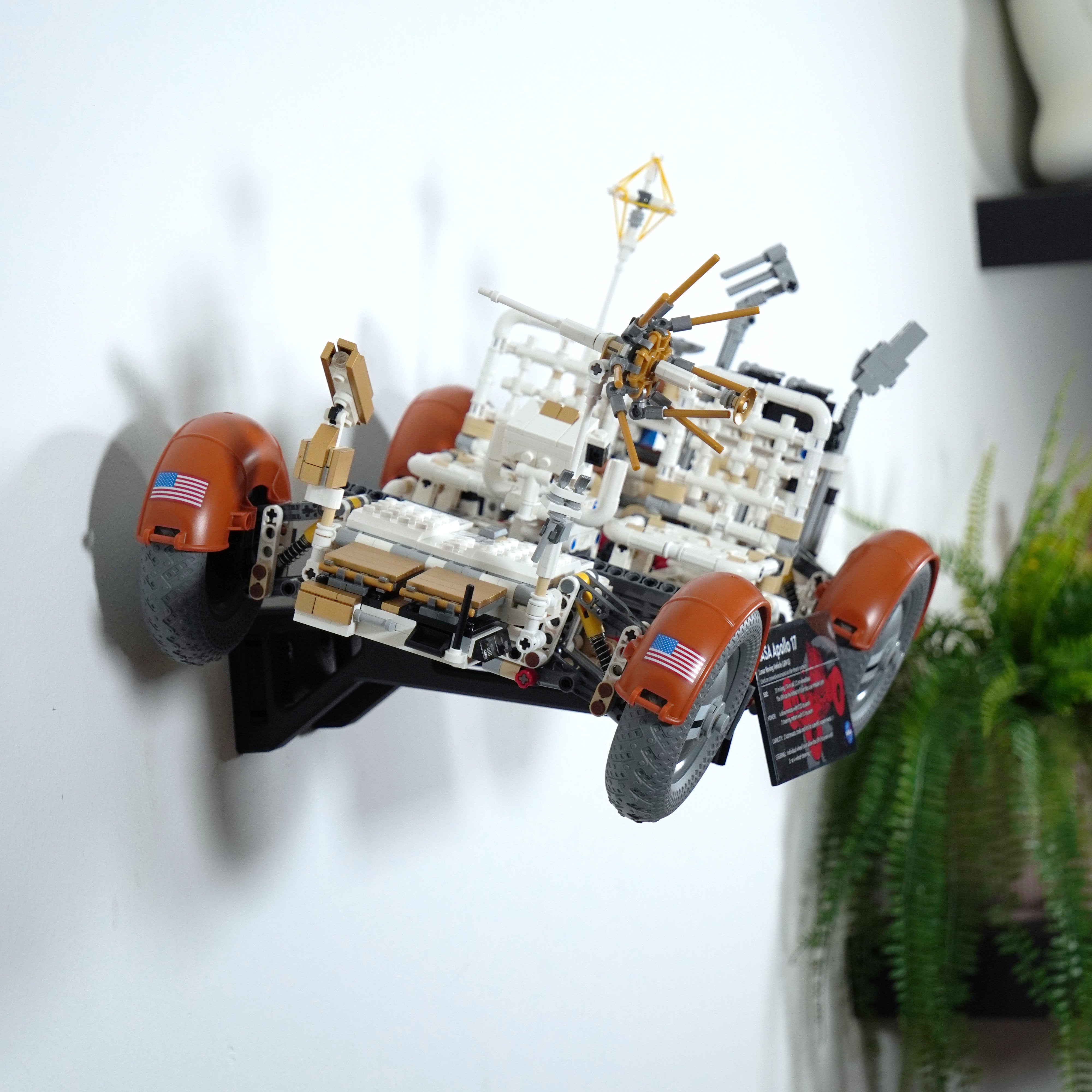 Fremvis din NASA Apollo Lunar Roving Vehicle elegant med dette vægophæng. Det giver mulighed for fleksibel placering, enten foldet eller udfoldet, og inkluderer separate beslag til moduler og informationspladen. Designet sikrer nem aftagning og en tilpasset opsætning på din væg.
