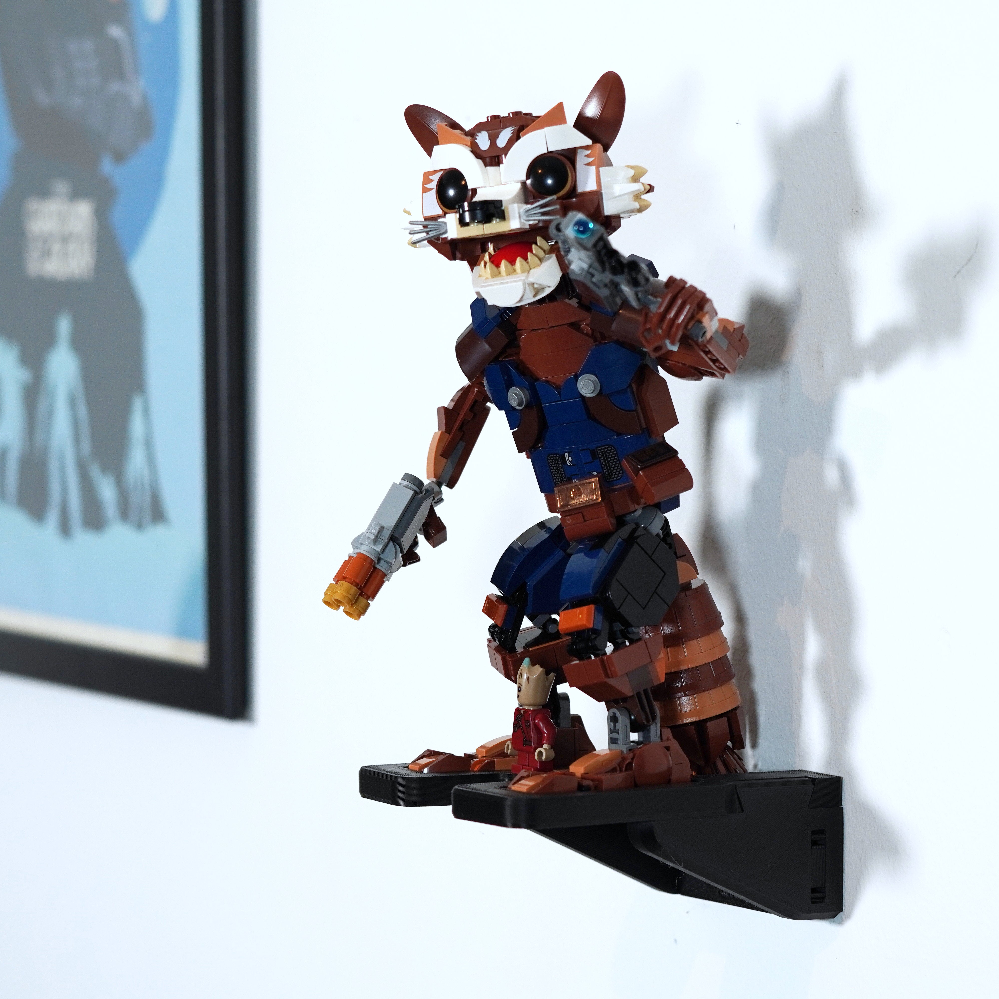 - Specialdesignet vægophæng til Marvel Rocket og Baby Groot (sæt 76282).
