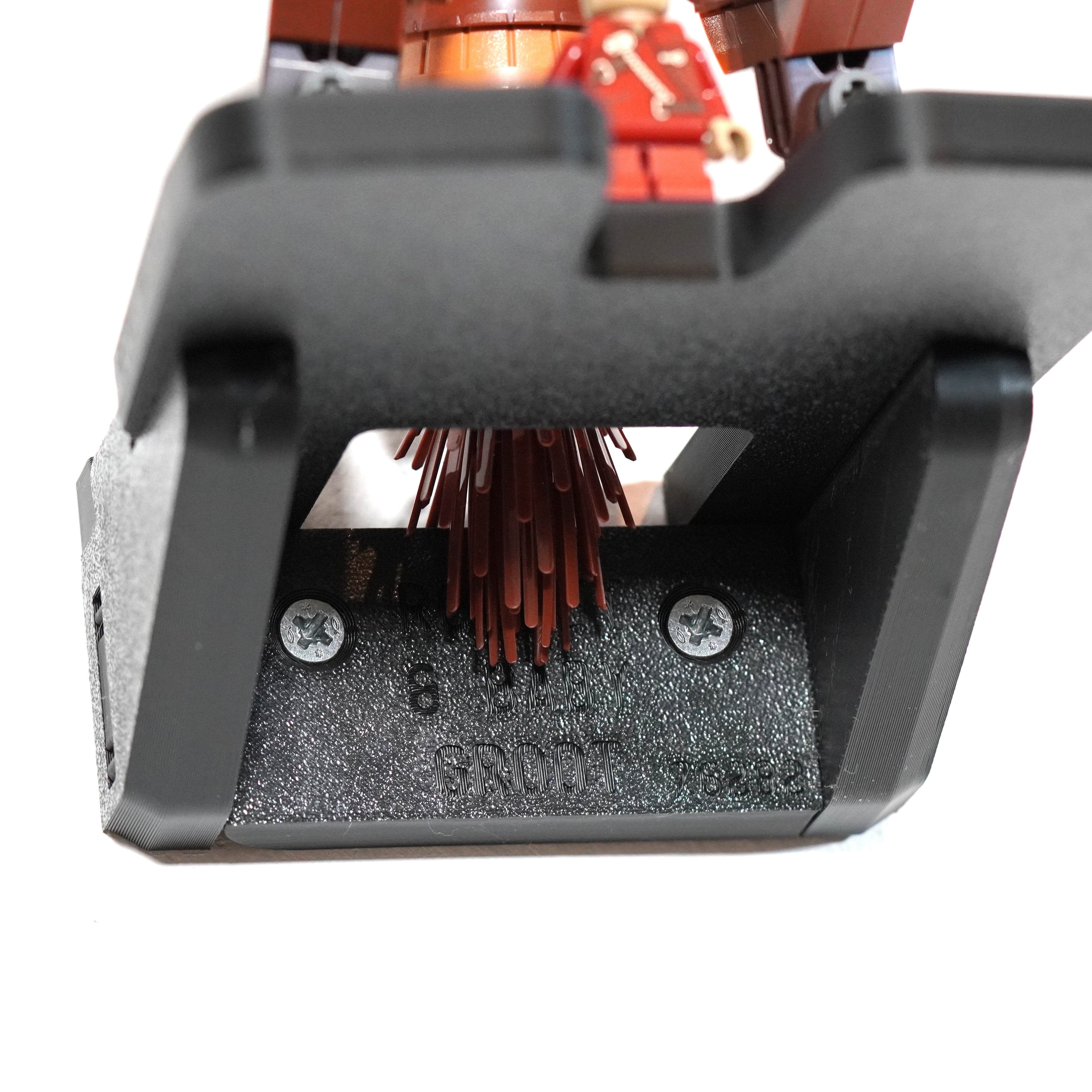 Dette vægophæng er designet til sikkert at udstille Marvel Rocket og Baby Groot sættet 76282. Beslaget monteres med to skruer og gør det let at tage modellen ned ved behov. Derudover inkluderer designet et separat monteringspunkt til Baby Groot figuren.
