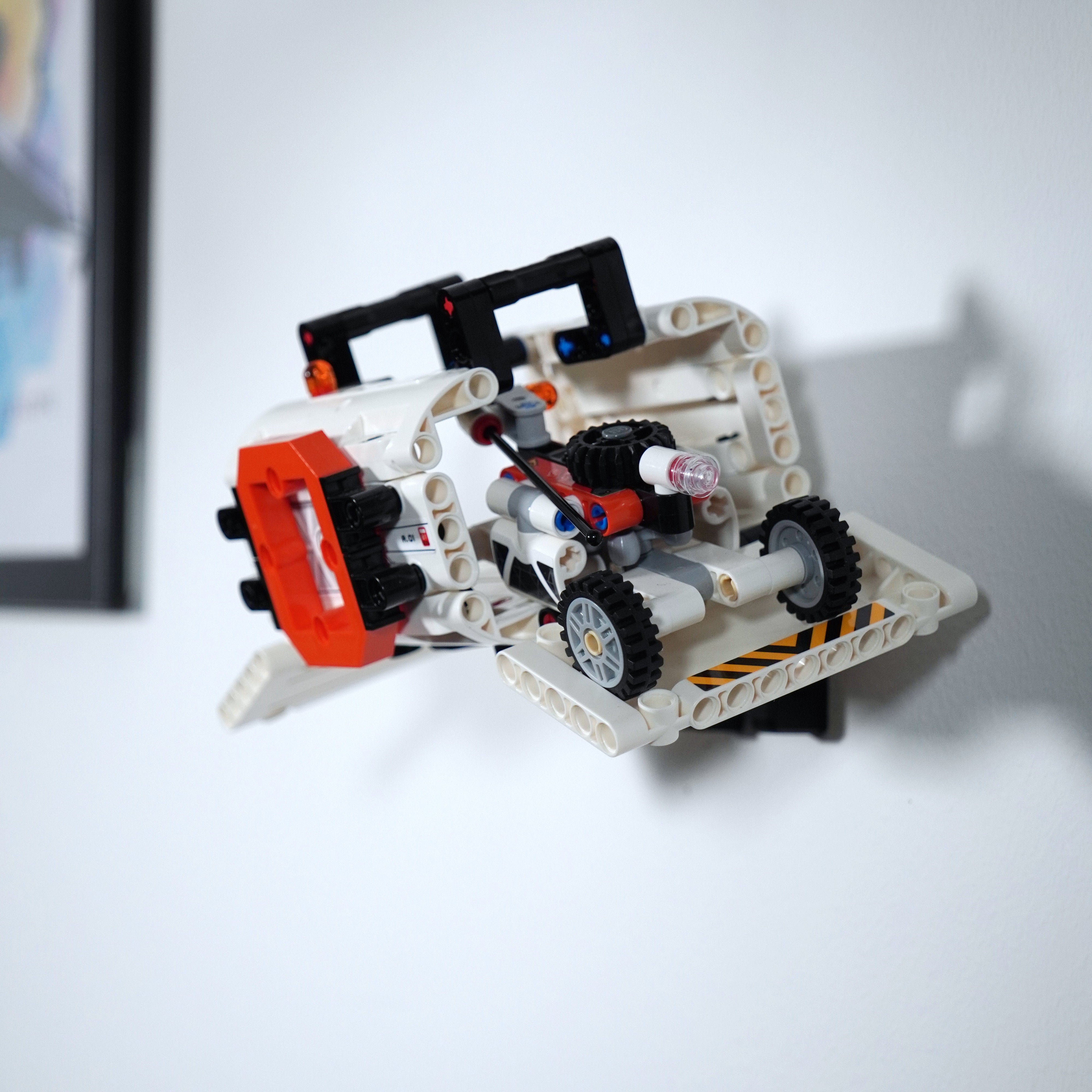 Fremvis dit Technic Space VTOL Heavy Cargo Ship sikkert med dette justerbare vægophæng. Det understøtter forskellige vinkler som fremadrettet eller til siden og muliggør nem afmontering. Sættet inkluderer desuden et separat ophæng til containeren og roveren, så hele modellen kan præsenteres samlet på væggen.