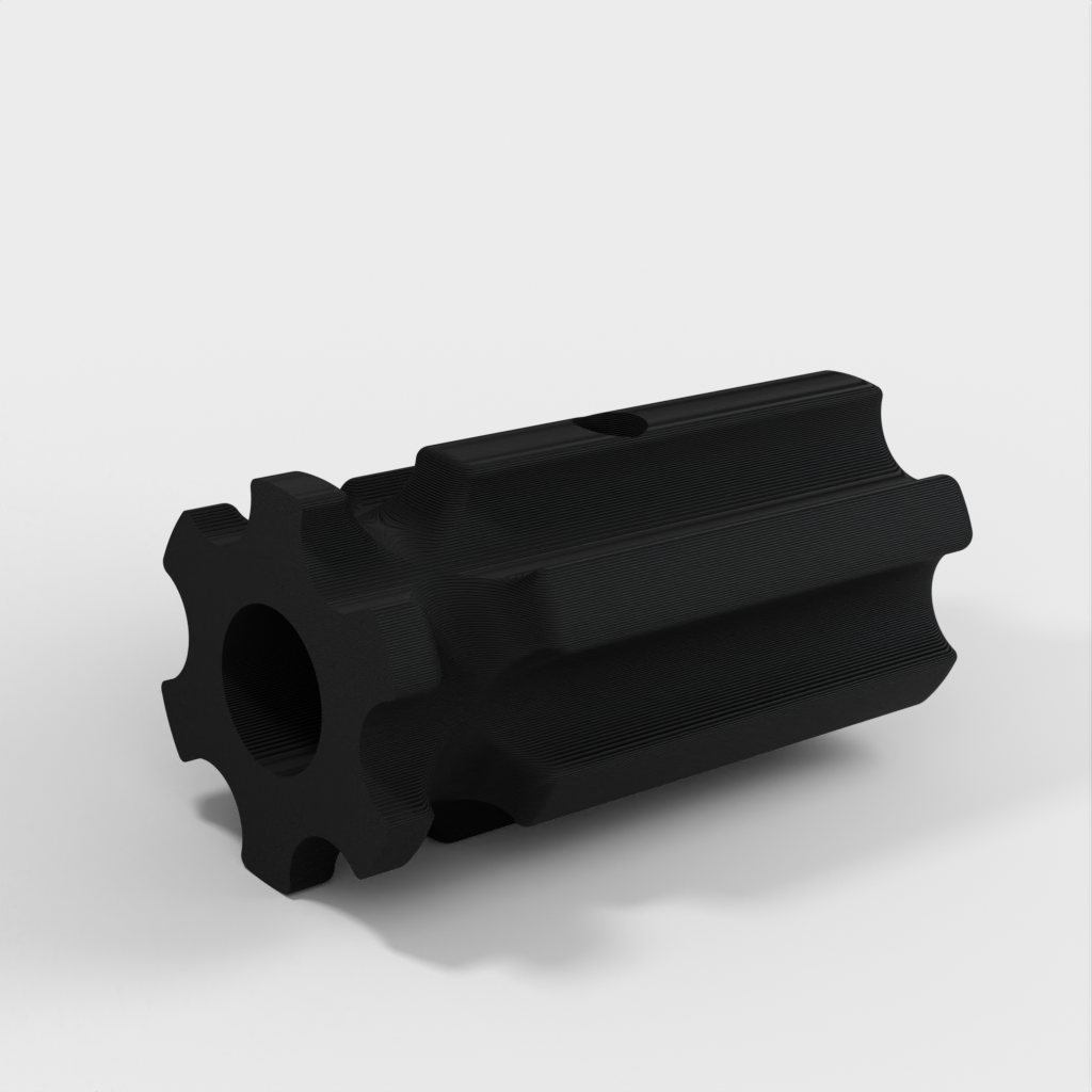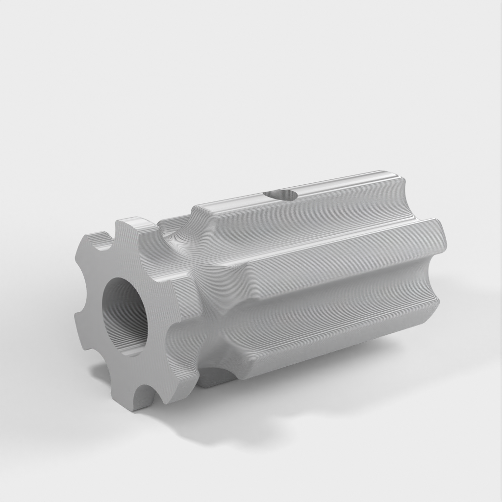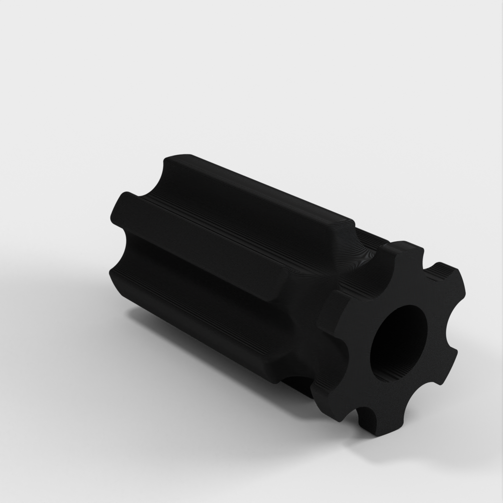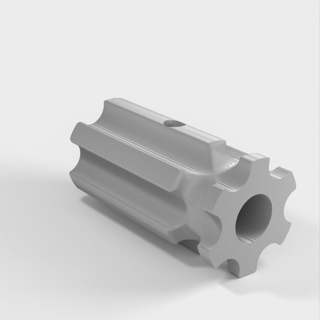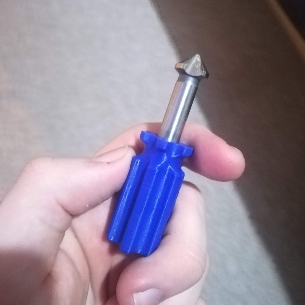 Værktøjsholder designet til at håndtere din afslibningsværktøj bekvemt. Den kan bruges på både træ og plast, uden at have brug for en boremaskine. Håndtaget er modeleret efter et billigt børneskruetrækker for nem håndtering. Hullerne er designet til en diameter på 8,2 mm og leveres med plads til en M4 indstillingsskrue for at låse værktøjet på plads. Der findes også en version uden hullet til indstillingsskruen.
